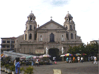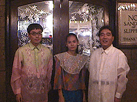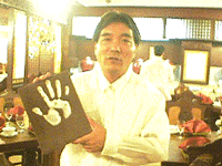 「カマヤン」というフィリピン料理を食べさせてくれるストランで食事をすることに。このレストランでの食べ方は何と料理を直接手掴み。始めは慣れなかったけど、このおかげで手で食べる食事の楽しさを知ったのさ。そして、店のお姉さんと三人仲良くマニラの正装。実物はもっと可愛い。スペインの血が入っているのだろうか。最後に店での記念に手形を一発。キアポというダウンタウンにも行った。そしてこれはそのキアポ教会。なんとフィリピンはアジアの中でもとても信仰の厚いキリスト教カソリックの国。でもキューピーみたいな人形にTシャツ着せてレザリオを持たすあたりが何ともいえない味だったなあ。