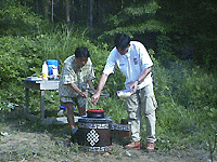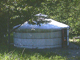 さて、パオの住み心地ですが、まん丸の空間は妙に落ち着いて楽しい気分にさせてくれます。母親の体内にいるような感じで、子供になってしまうんでしょうか。最高6人で泊まった事がありますが、子犬が6匹、じゃれ合って寝っ転がっているようでした。一番良いのが一人で泊まる時、地球というか宇宙を感じてしまんだな。ただパオは物を置くには不便です。壁が丸いのでタンスでも置いたひにゃ、半円形の隙間が出来てしまいます。モンゴルの草原では物はいらないということでしょうか。鍋とベットと酒があればそれでいいのです。でも今では、モンゴルの人もラジカセは持っています。音楽は生きていくのに最低限必要な物なんですね。私のパオにもCDプレーヤーだけはあります。モンゴルの民族音楽馬頭琴など聞いていたら、韮崎でも大草原が出現し、気分はモンゴルです。