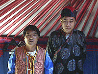これはモンゴルの正装。借り物です。隣にいるのが俳優で友人の関川君。彼はどでかい体をしていますが、野草の事は滅法詳しい。食べられる草かそうでないかはすぐ分かる程の野草博士。