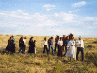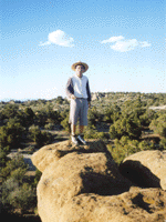 私も踊りましたが、大地を確認してるような感じになりましたね。長時間踊れば、あまりの単純さにハイになっちゃうんでしょうね。シップロックから車で2時間ほど行った所にある、シュラインロックにたたずんでます。ここからは360度地平線が見えます。聖なる岩だそうです。大地は所々にブッシュのある荒れ地なんですが、セイジの草木がいっぱいあって、いい香りなんですよ。