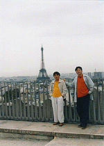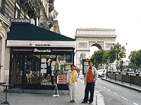 | パリにいる証拠写真です。 凱旋門がみえますね。 東京を夜に発ち、朝にはパリ。 時差ボケも少なく仕事の前の散歩です。