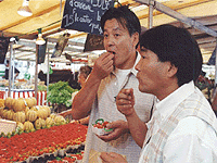 |  | パリの朝市です。 果物の色彩、展示の仕方。 何かこちらの方がアートっぽいです。 |