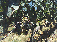 | ワインになる葡萄は小ぶりです。 日本のように棚から葡萄がたれ さがっていないんです。 お茶の畑のようでした。